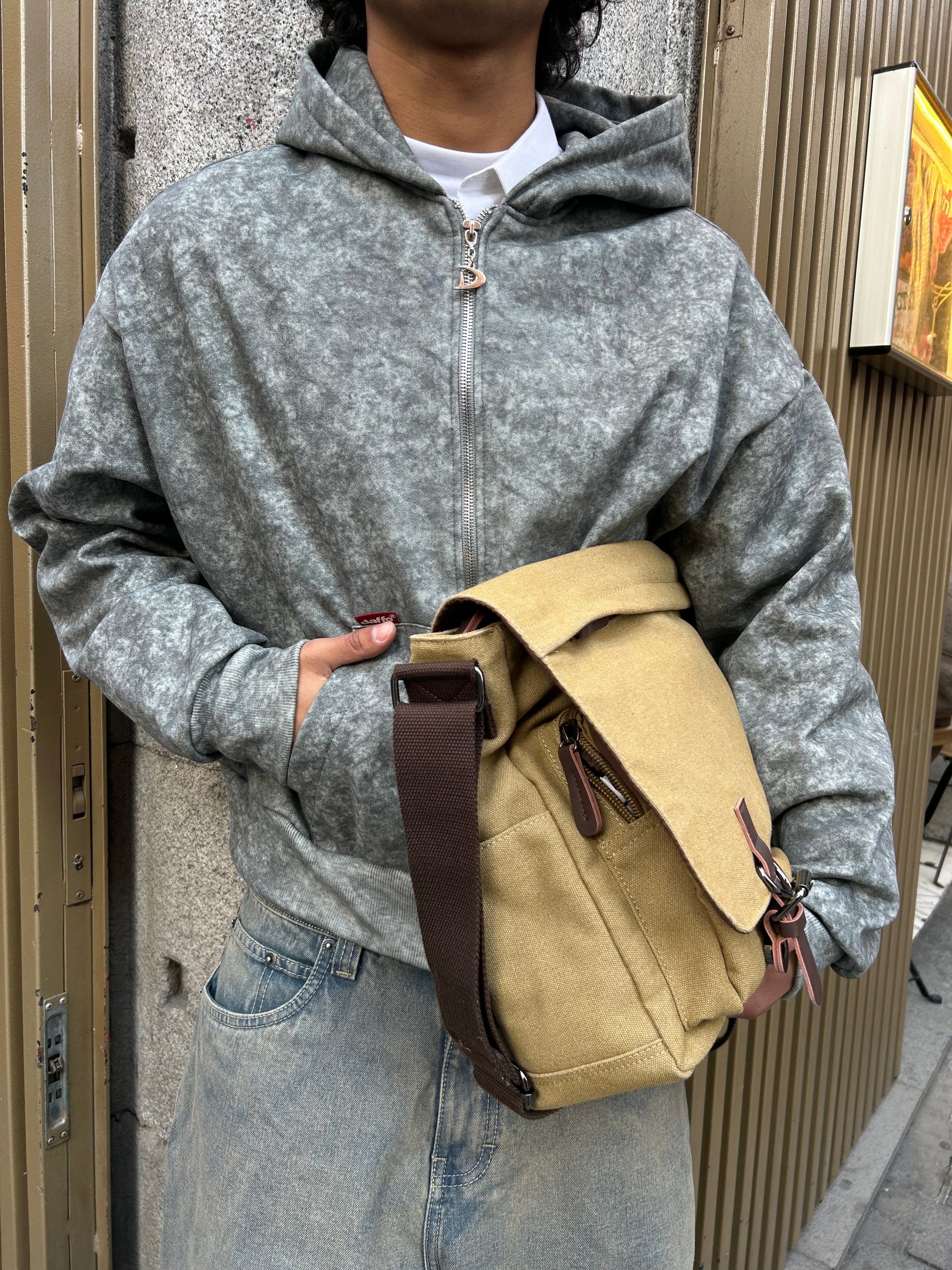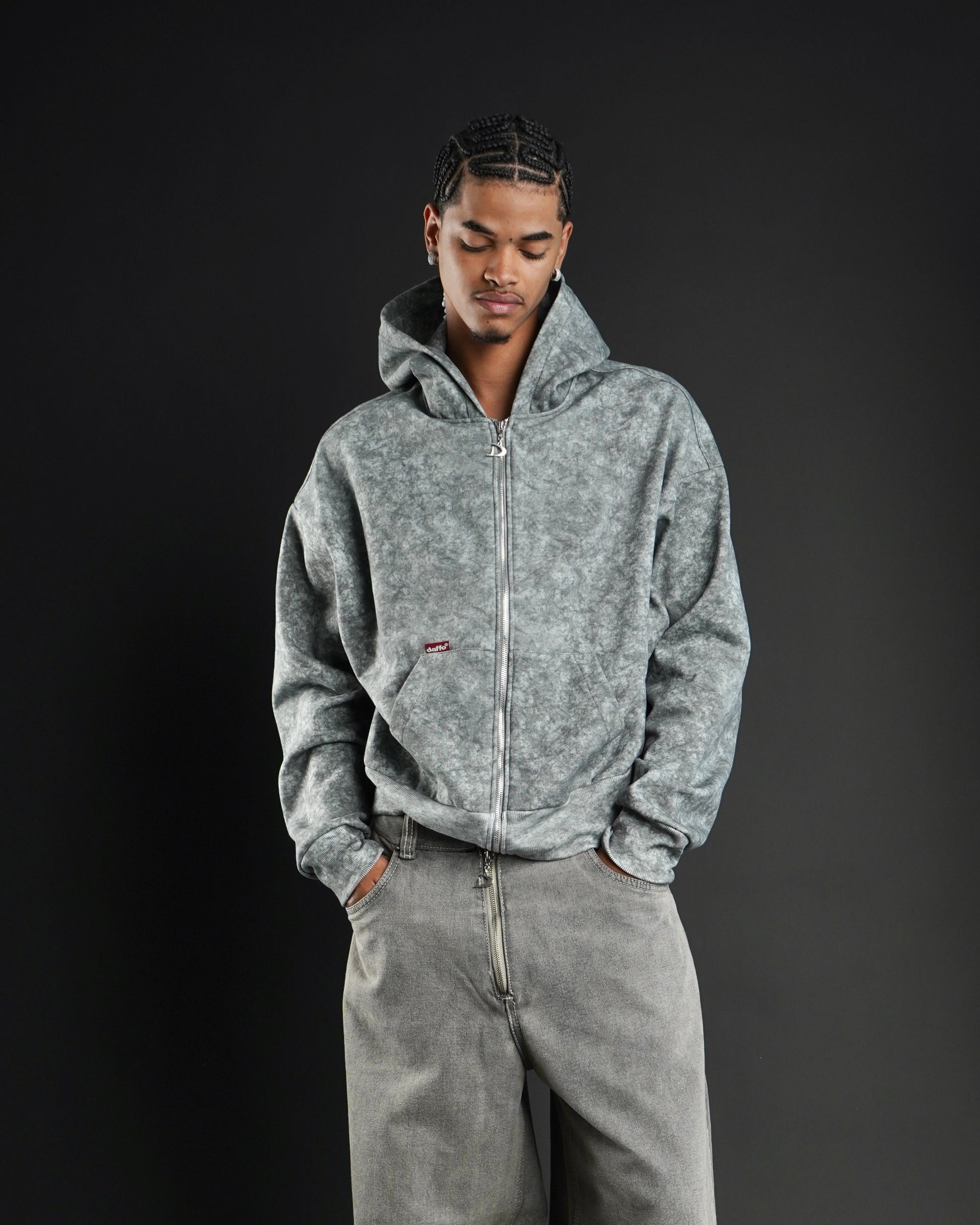 Zip up cropped speckled grey